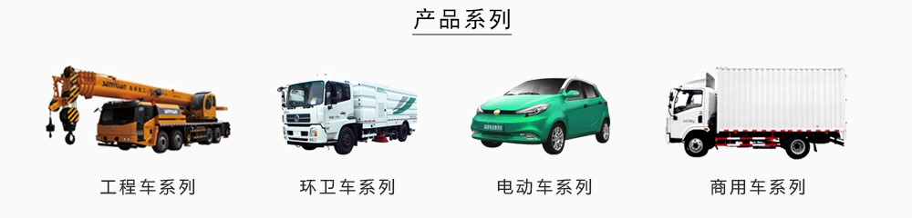 主要產品有四大系列:工程系列、環(huán)衛(wèi)系列、純電動專用和乘用系列、商用車系列。擁有160多個國家公告產品,1000多項自主知識產權專利技術。