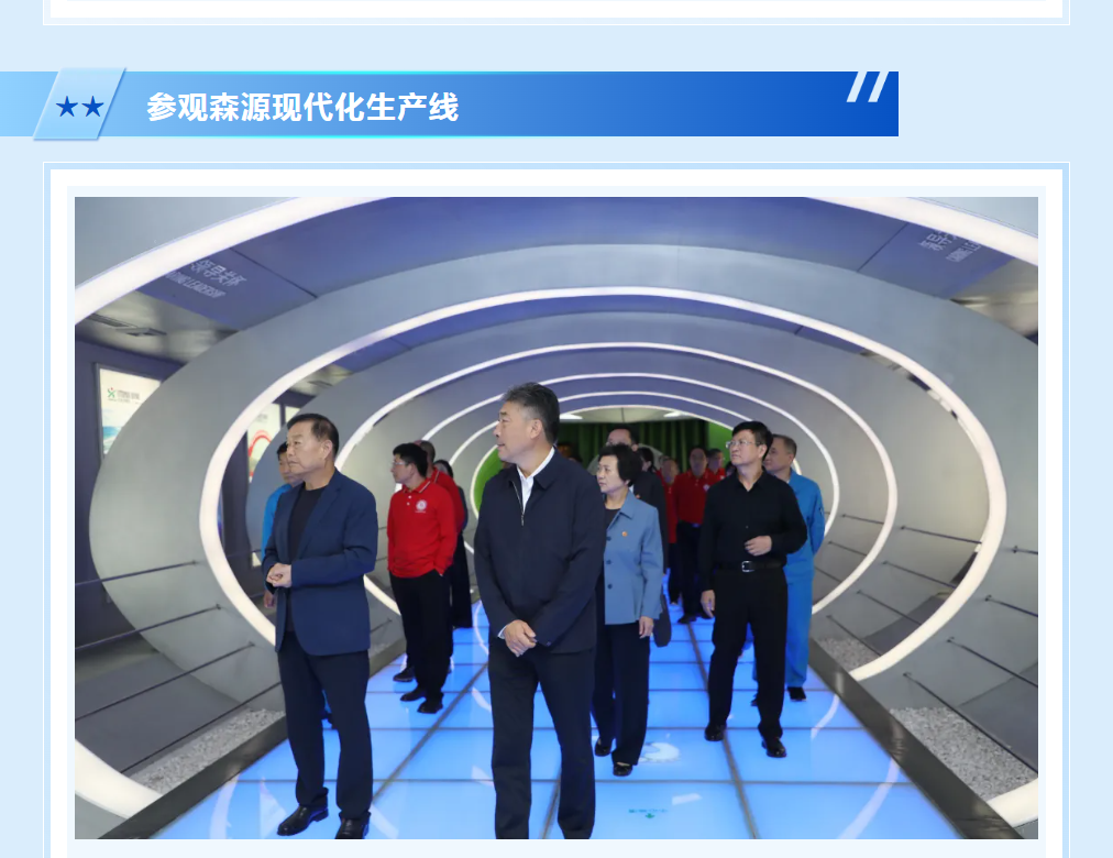 座談會(huì)前,司林勝一行深入公司生產(chǎn)一線進(jìn)行參觀,詳細(xì)了解森源集團(tuán)的發(fā)展歷程、企業(yè)文化以及科技創(chuàng)新成果,他們對森源集團(tuán)智能化的生產(chǎn)線和高端裝備制造能力表示高度贊賞。